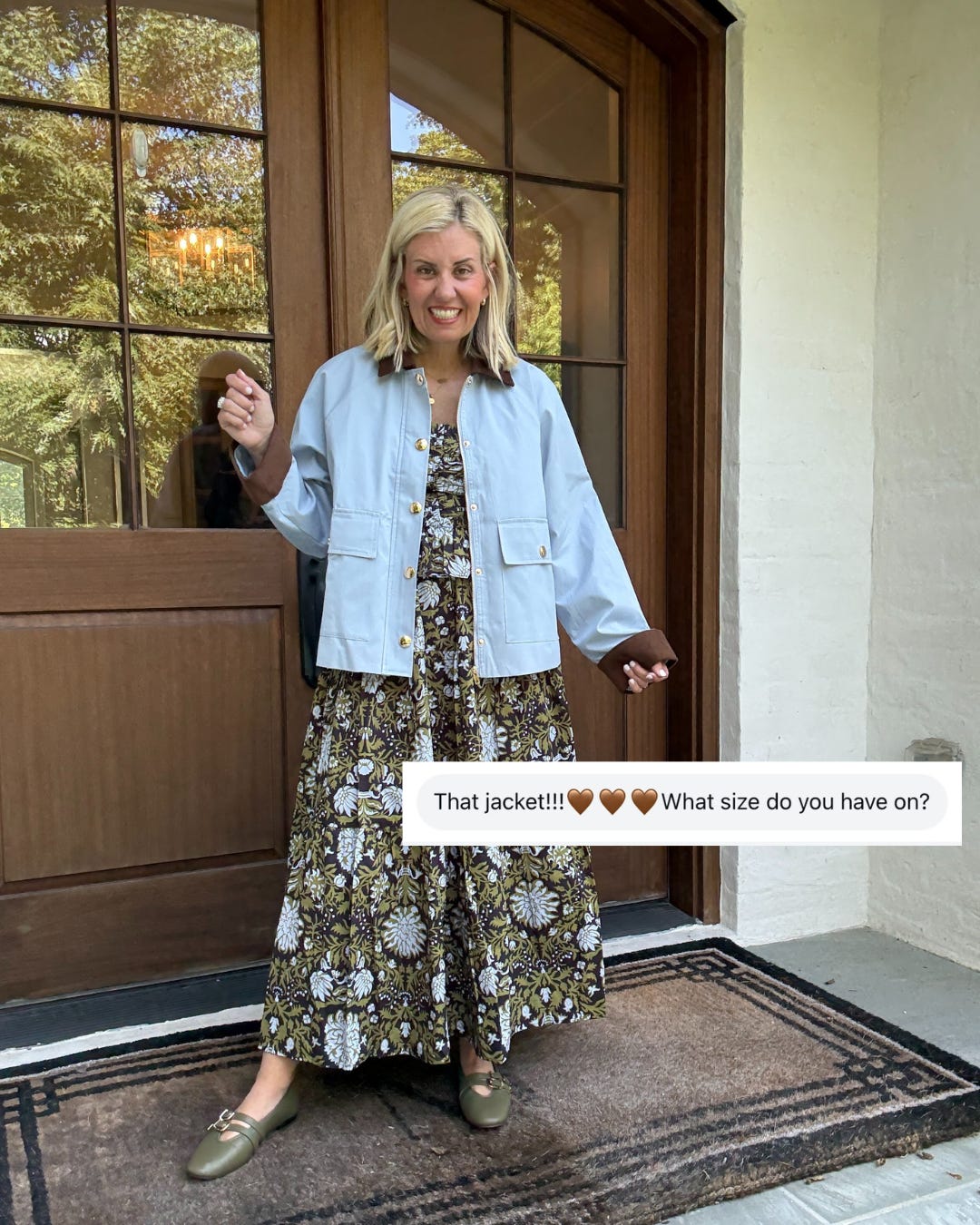 Y’all, this swing-style barber jacket is everything…the brown cord trim, those buttons- I can’t get enough. The soft blue is basically a neutral. I’m in an XS and already planning a million outfits.