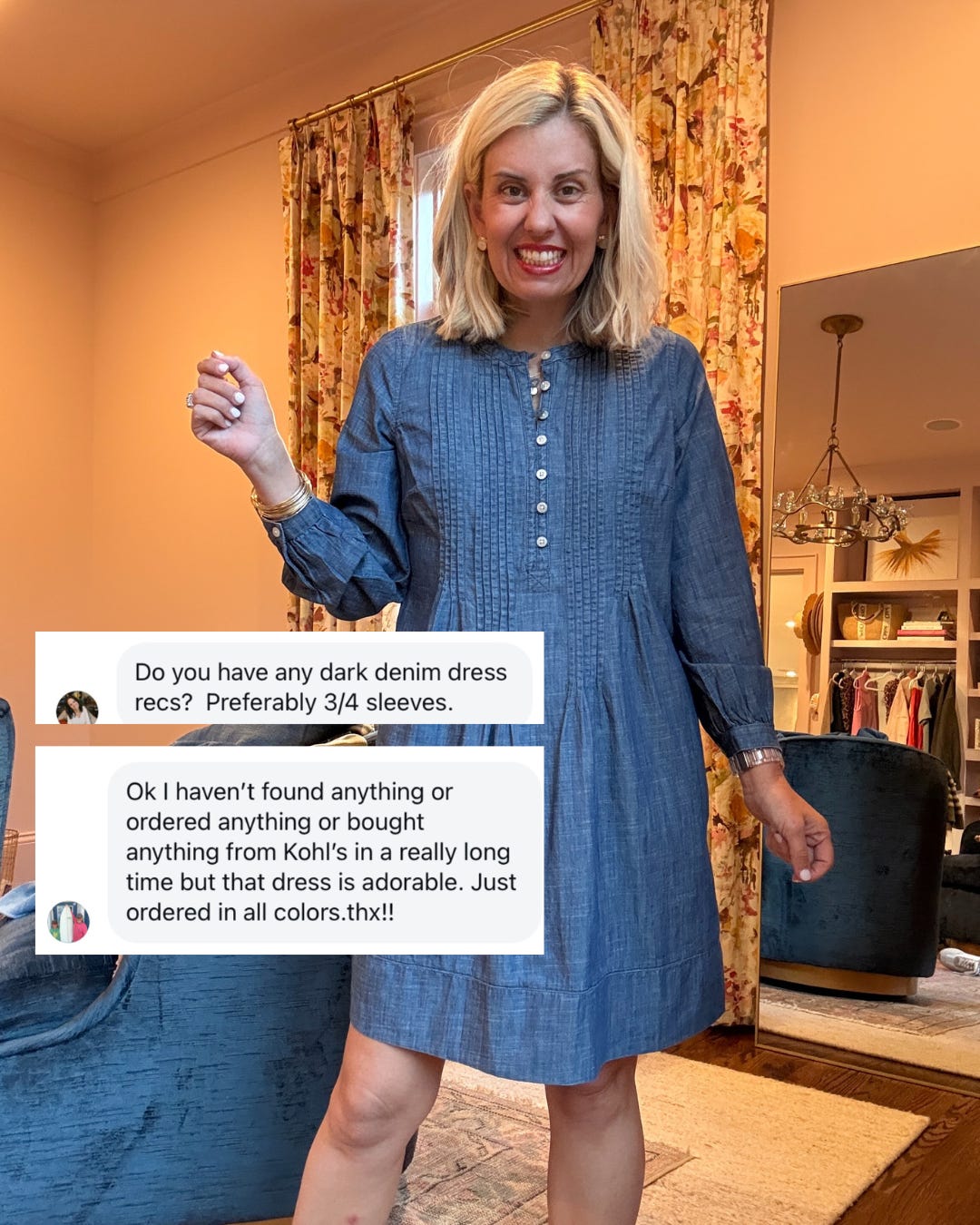 Looking for the perfect denim dress? I tried the Kohl’s denim dress we’ve been obsessing over, and let’s be real - it’s a total winner. Cute style? Check. Affordable price? Check. Comes in sleeveless and leopard print options? Check. I basically want one in every version. Snag it here before you miss out…you’ll thank me later!
